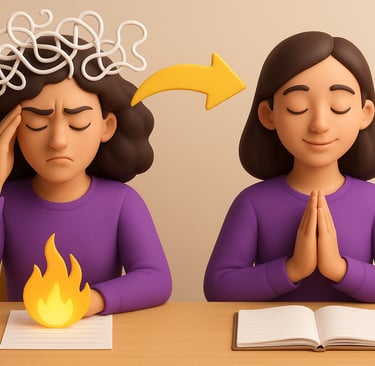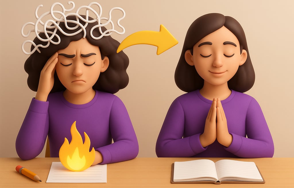 Write it down — and burn it : When my mind is racing, I write everything down on a piece of paper, every thought, every fear, every “what if.” Then I burn it. Watching it turn to ash feels like releasing emotional weight.